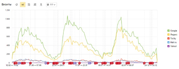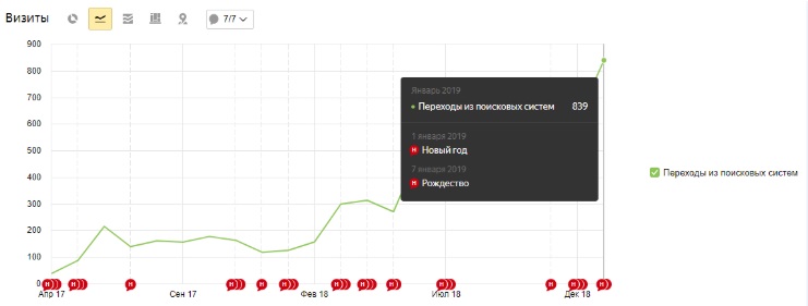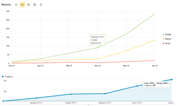 - число целевых посетителей из Гугла и Яндекса увеличивалось каждый месяц. Если сравнивать с прошлым сезоном, количество заказов и продаж у владельца сайта увеличилось.
