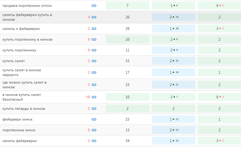 - коммерческие запросы (к примеру, «купить пиротехнику в Минске») были привязаны к информационным текстам, а не к товарному каталогу;